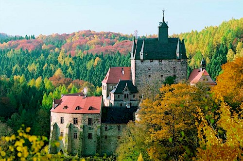 Die Burg Kriebstein ist eine über 600 Jahre alte gotische Burg, die auf einem steilen Felsen hoch über einem kleinen Flüsschen thront. Die Burg ist in sehr gutem Zustand und bietet die perfekte Kulisse für mittelalterliche Ritterspiele. Sie diente als Sitz verschiedener Adelsfamilien und kann seit 1930 besichtigt werden.