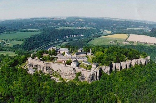 Die Festung Königstein - die deutsche Bastille - liegt am linken Elbufer unweit von Dresden. Die 1233 erstmalig erwähnte Festung spielte nie eine wichtige Rolle in militärischen Auseinandersetzungen, wurde aber auch niemals erobert. Die sächsischen Fürsten schätzten sie als sichere Zuflucht und Aufbewahrungsort für den Staatsschatz bei Kriegsgefahr und Belagerungen. Von 1591 bis 1922 war die Festung das bekannteste Gefängnis in Sachsen. Seit 1955 kann die Festung besichtigt werden, u.a. beherbergt sie ein militärhistorisches Museum.